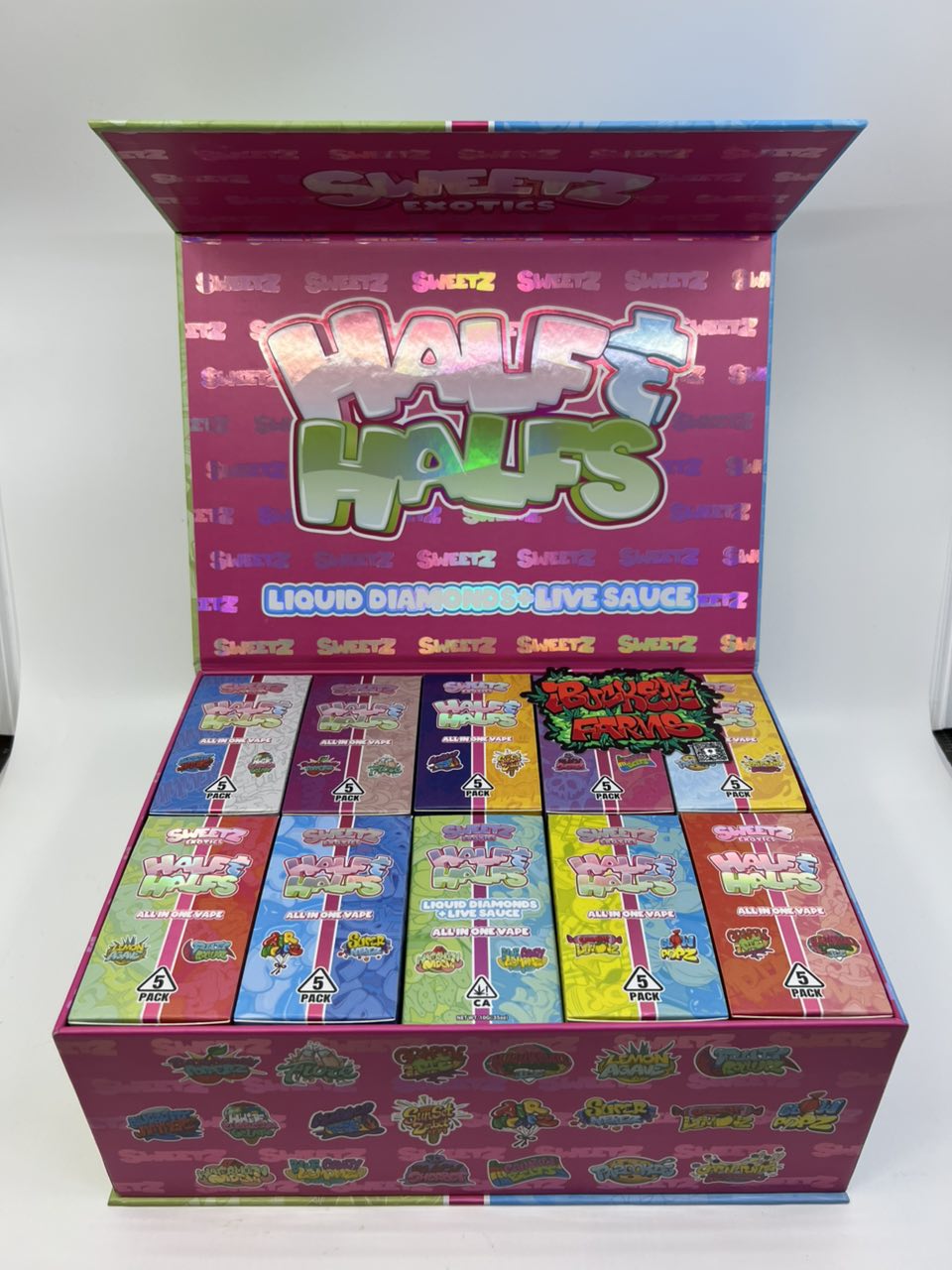 SWEETZ EXOTICS Half & Halfs Liquid Diamonds represent the pinnacle of modern cannabis vaping. With unmatched potency, refined flavor, and trusted purity, this line is crafted for connoisseurs who expect more from every session. From the smooth vapor quality to the luxurious design, every detail reflects a dedication to excellence.